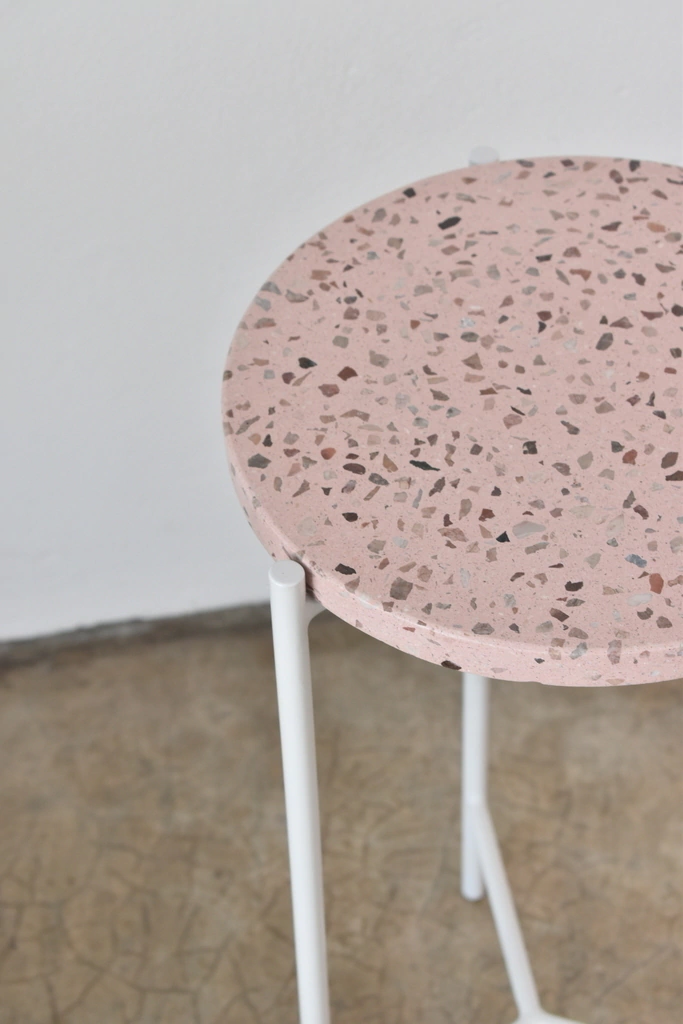 Material: Base de hierro. Tapa de terrazo (el color de las piedras puede variar según la disponibilidad)