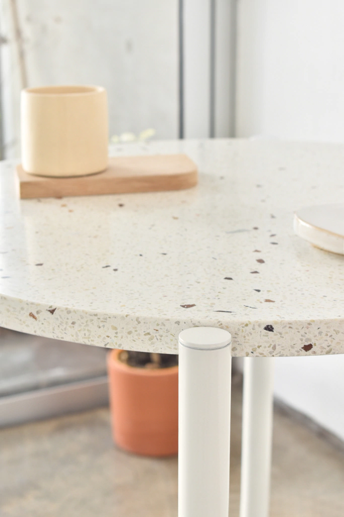 Material: Estructura: Caño de acero / Tapa: terrazo (el color de las piedras puede variar según la disponibilidad)